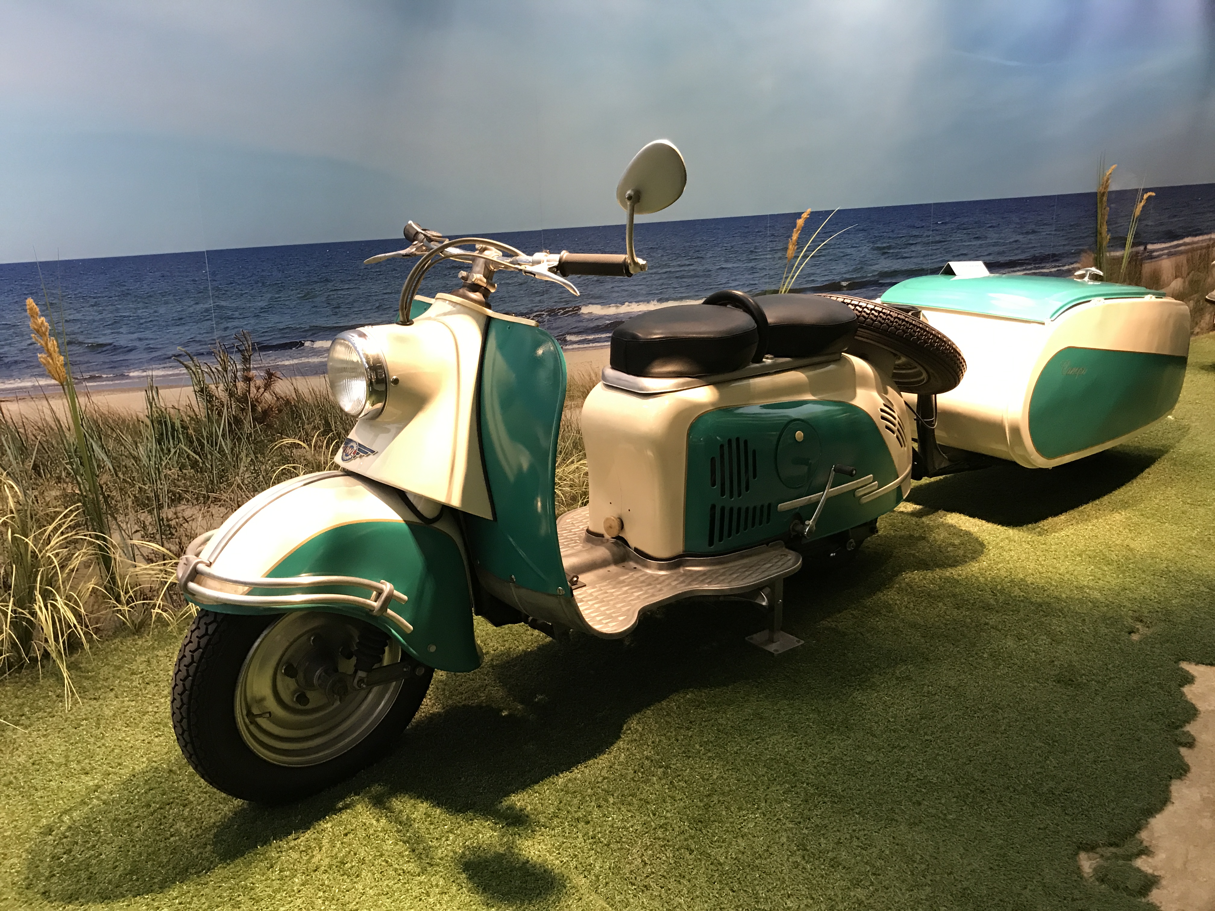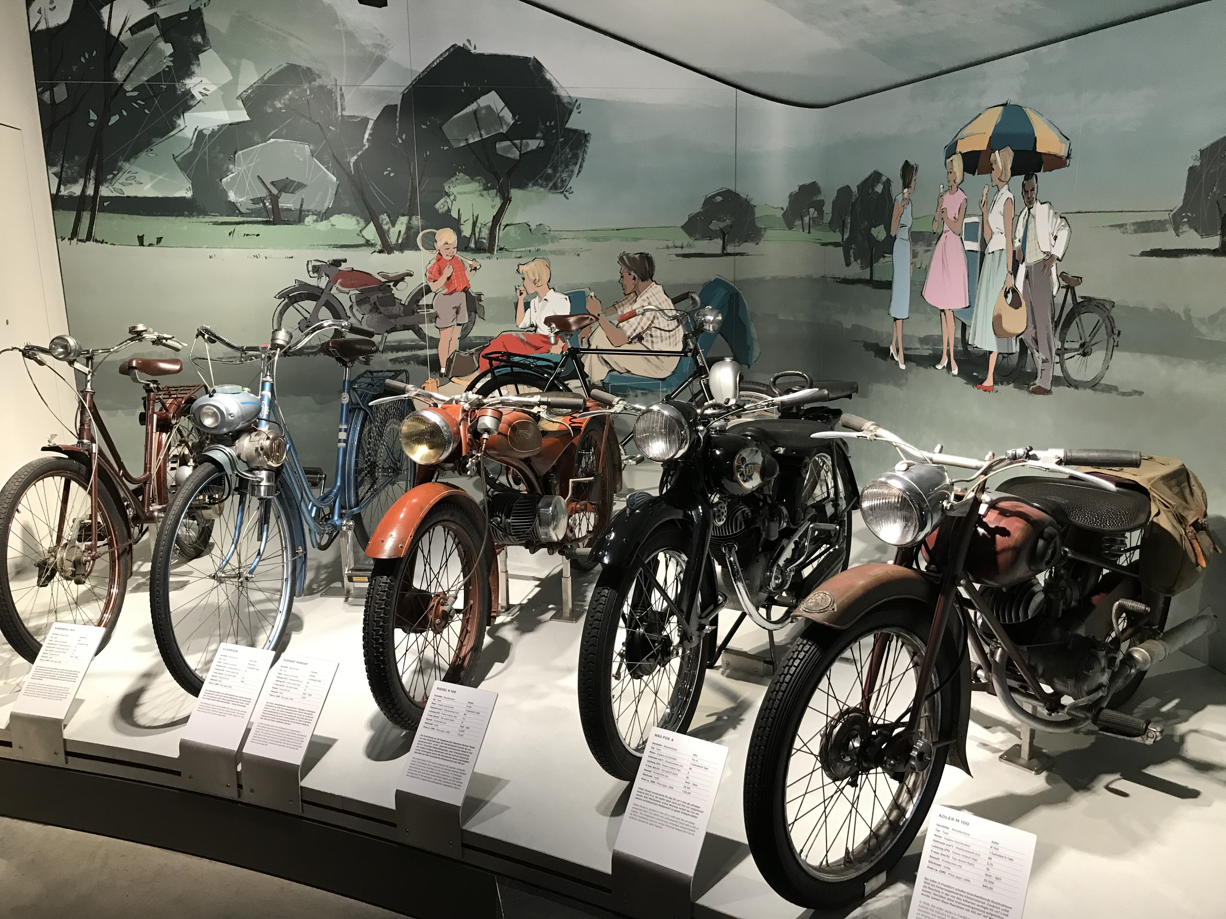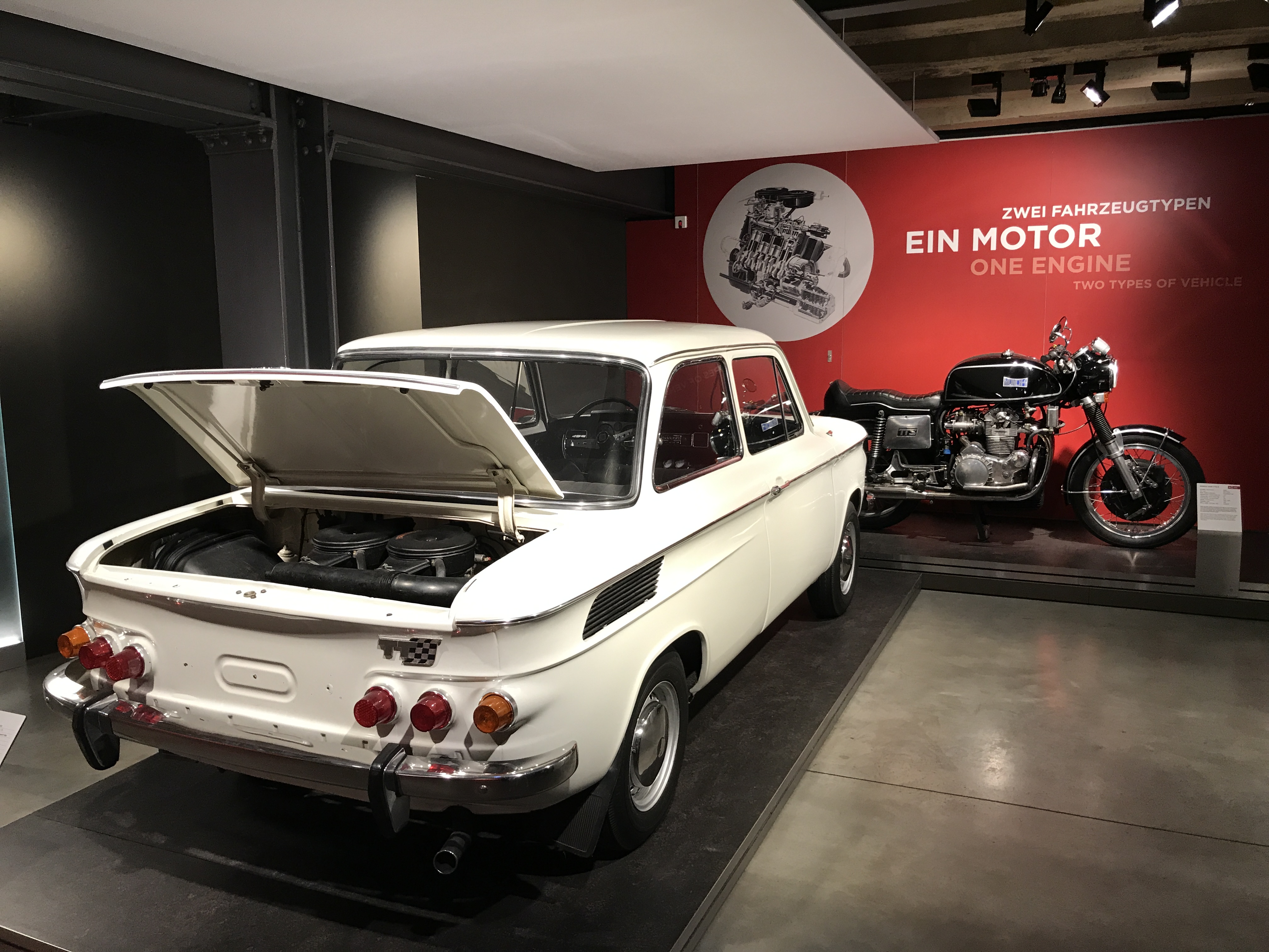 Natürlich beginnt alles mit der Erfindung des Laufrades durch den Freiherrn Karl von Drais. Es folgen etliche Exponate speziell aus der Geschichte der Zweiradentwicklung, vom Motorrad von „Hildebrand & Wolfmüller“ aus 1894 über den Krupp Motorläufer von 1919 (angesichts der jetzt aufkommenden E-Scooter ein frappierender Urahn!) bis hin zu Münch Mammut und Wankelmotorrädern … seht die Bilder, fahrt selbst hin.