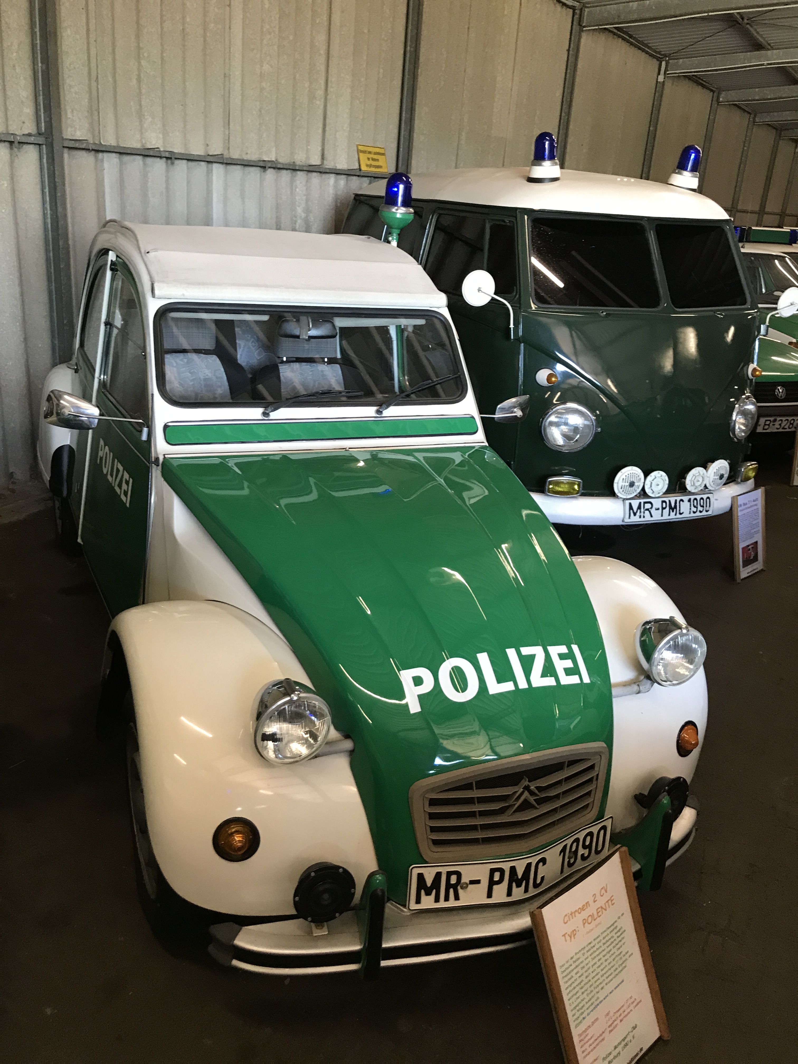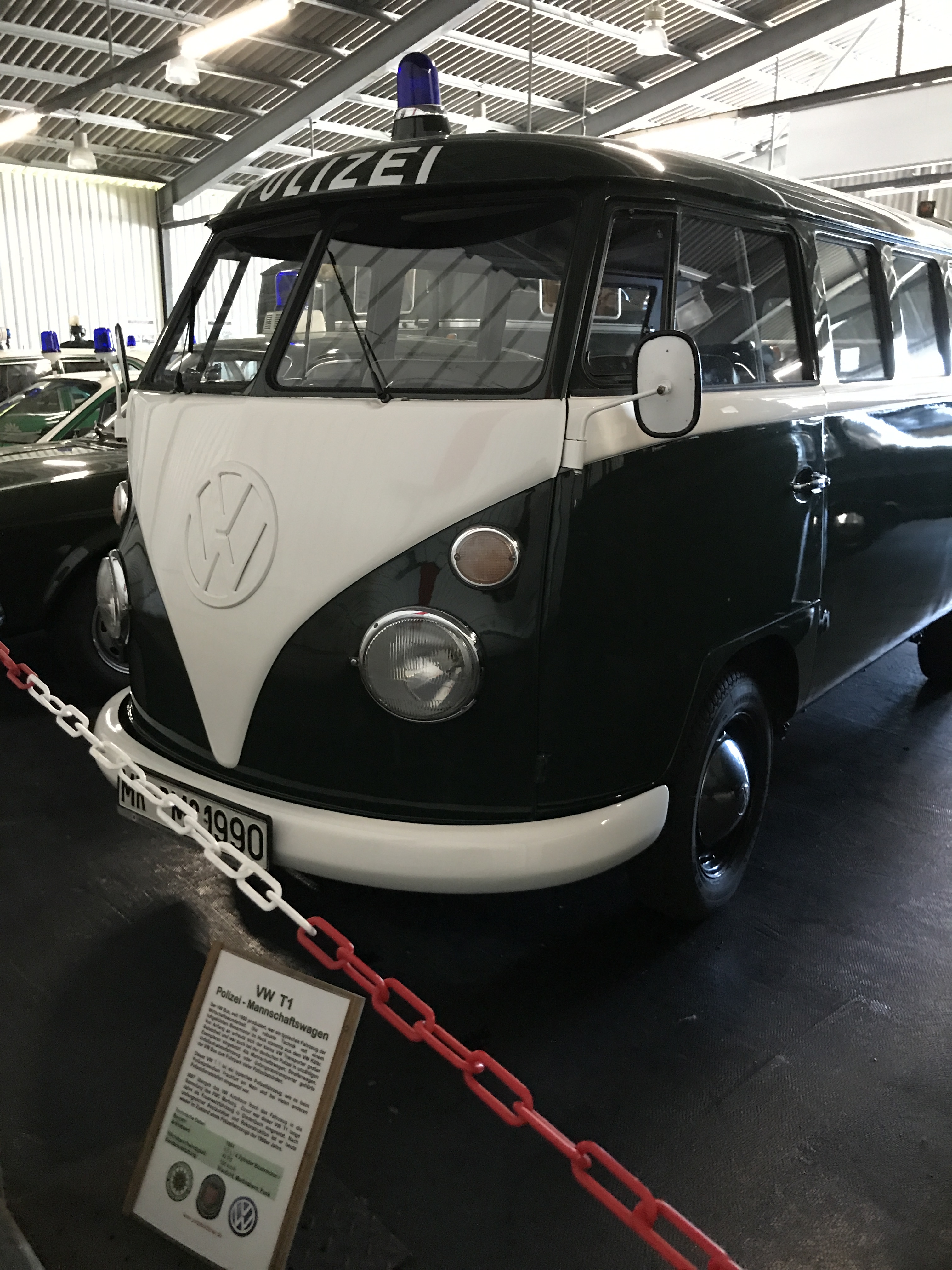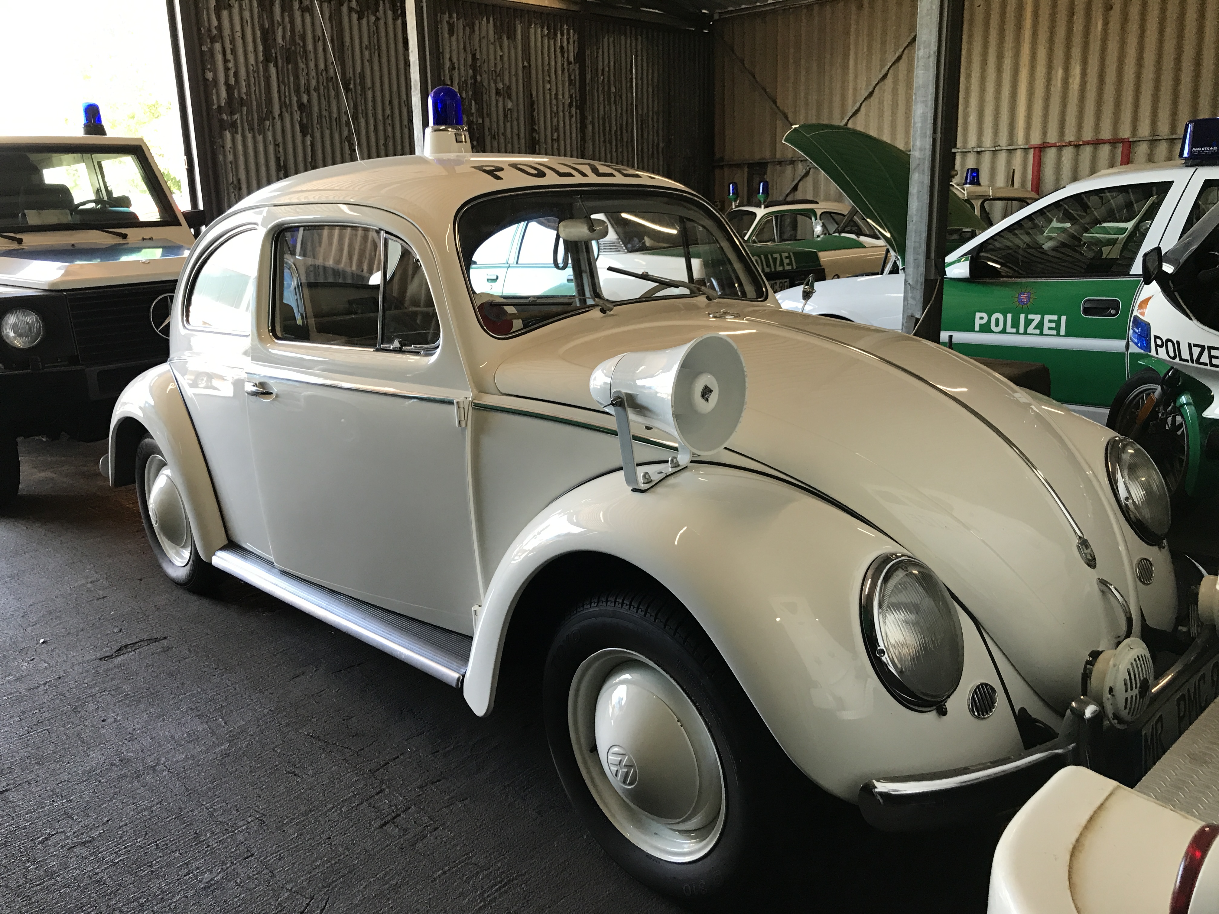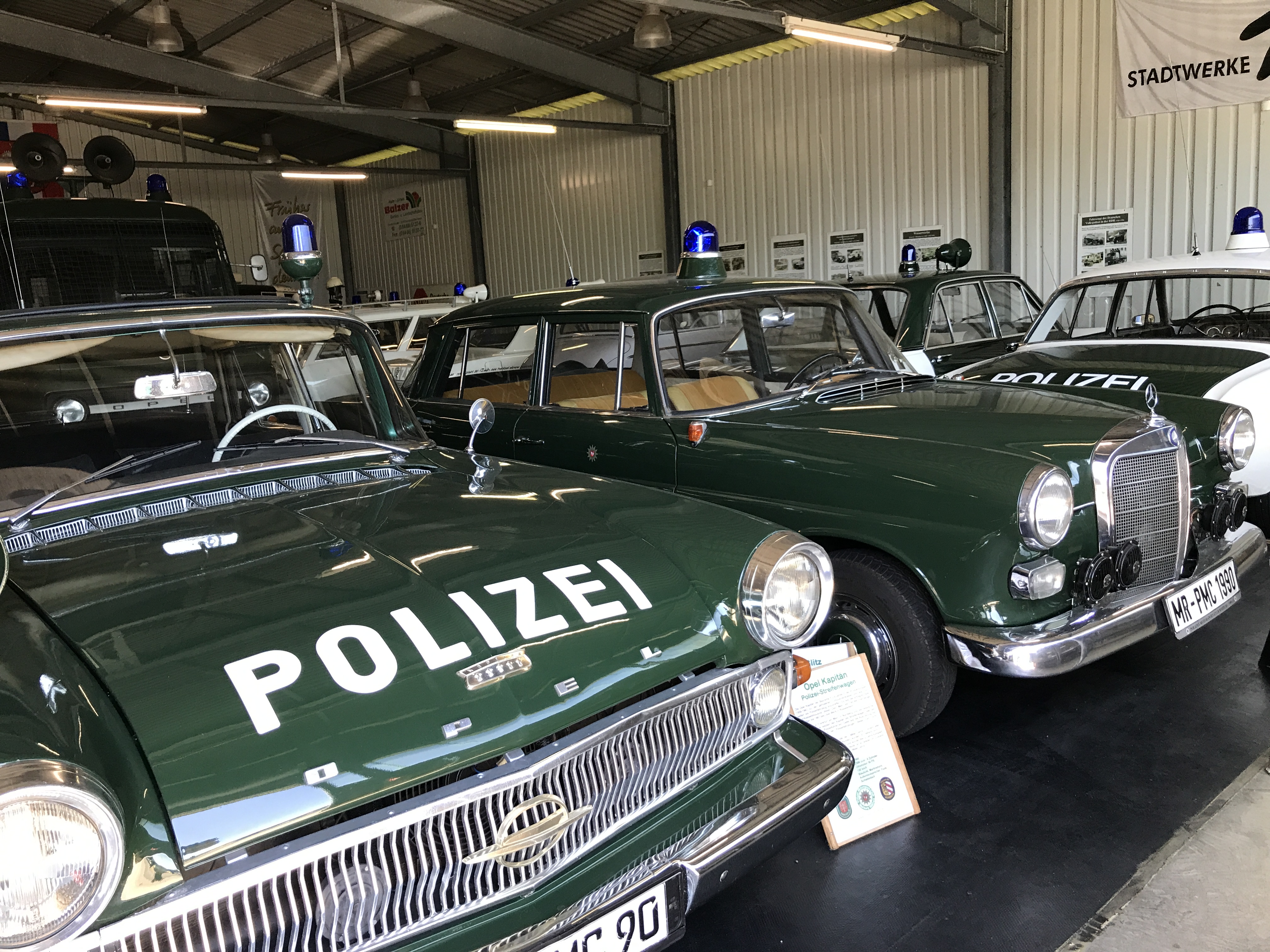 Ziel des Treffens war das „1. Deutsche Polizeioldtimer-Museum Marburg„, welches seit 1990 vom „Polizei-Motorsport-Club Marburg e.V.“ getragen und betrieben wird. Wir erhielten eine exklusive Führung durch eines der Gründungsmitglieder (Hans-Peter, ebenfalls Passat-Freund – so schließt sich der Kreis), und – was soll ich sagen – es hat mich absolut überrascht, was hier in einigen unscheinbaren Eternithallen auf einem ehemaligen Kasernengelände alles zu finden ist.