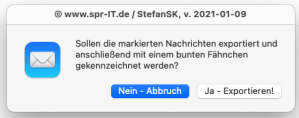 Insbesondere zu meinem Skript „eMails exportieren“ kommen immer häufiger Rückfragen, Anregungen und Verbesserungsideen. Ich habe das Skript daher in den letzten Tagen einmal grundüberholt und um einige Details ergänzt; die überarbeitete Beschreibung findet sich auf der bekannten Seite im Blog.