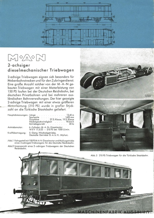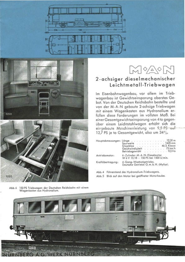 In meinem persönlichen Archiv ist hierzu noch etwas Interessantes aufgetaucht … ein „M.A.N – Diesel-Triebwagen“ – Prospekt aus den frühen 1950er Jahren, den ich nachfolgend verkleinert wiedergeben möchte.