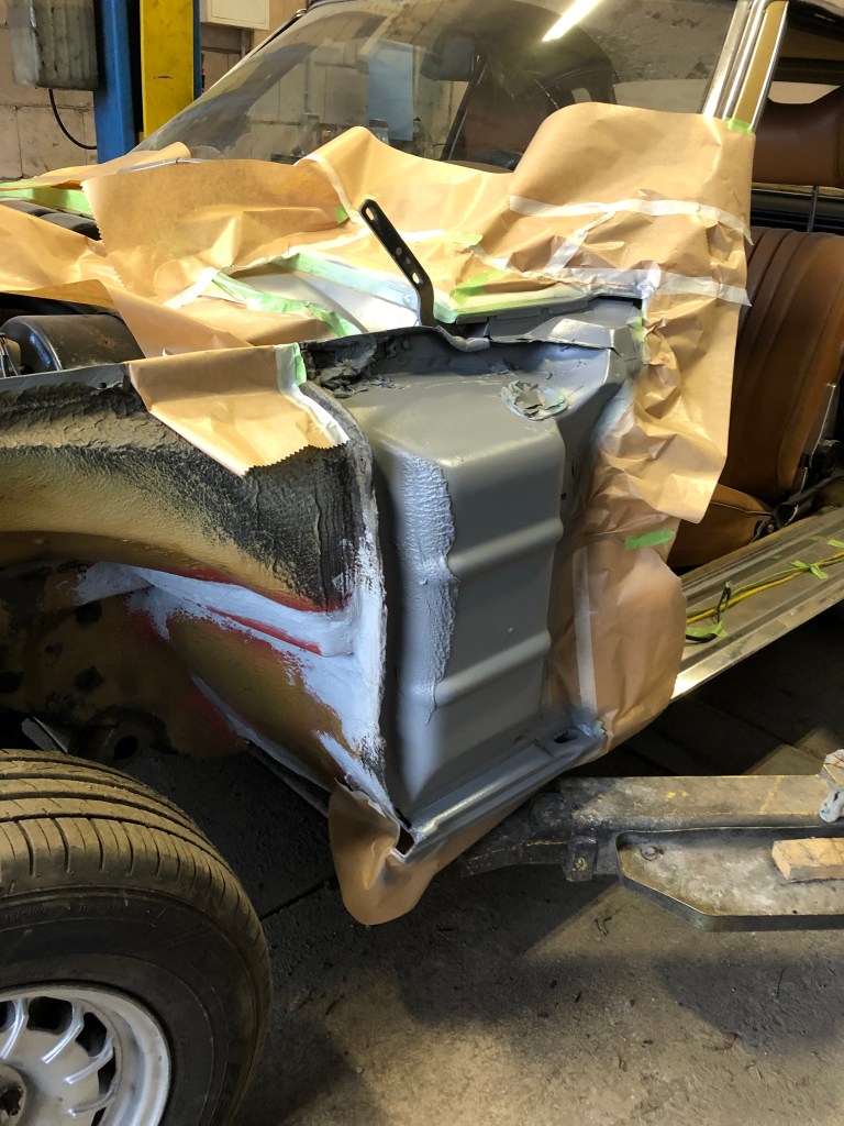 Nachdem mein Karobauer seine Halle demnächst frei räumen muss, werden die Arbeiten jetzt wohl auch etwas zügiger voranschreiten, hoffe ich. Am Heck sind auch noch Löcher zu schließen.
