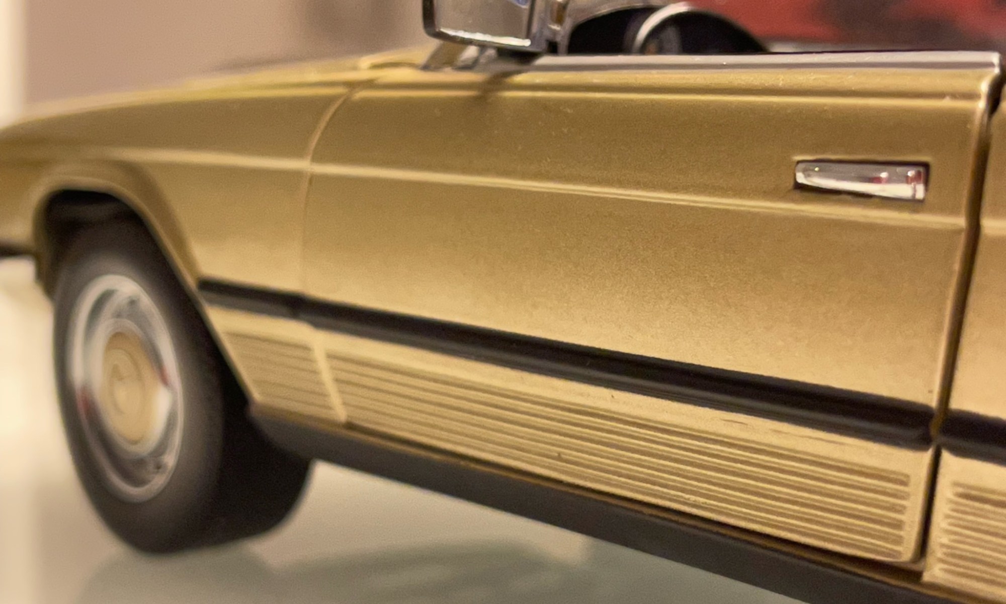 Der Guzzler hat ja im Original die unförmigen US-Stossfänger drauf und die vorderen Scheinwerfer mit runden Einsätzen anstelle der hierzulande üblichen Breitbandscheinwerfer.