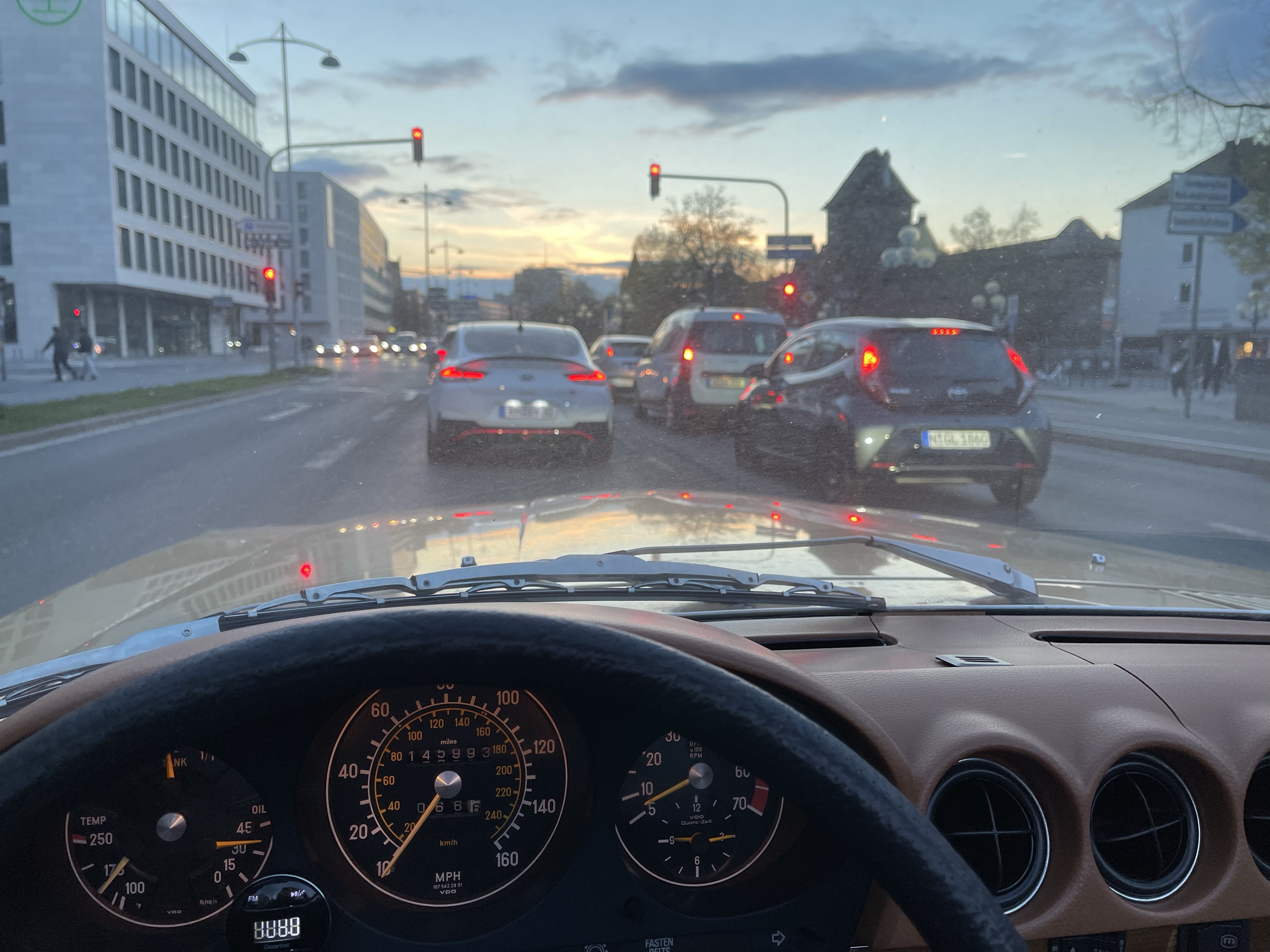 Vor dem Abstellen im Parkhaus war noch die passende Gelegenheit für „Verdeckpflege“ – mit dem Dursol-Kratzer-Entferner und einer alten weichen Stoffwindel wurden die trüben Scheiben sogar wieder recht passabel, das hätte ich nicht gedacht. Vorher musste natürlich der grobe Dreck mit feuchten Lappen und etwas Glasreiniger runtergewaschen werden …