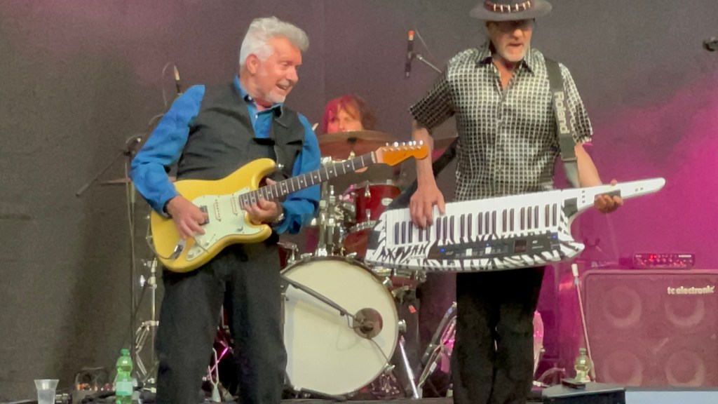 Manfred Mann ist mittlerweile fast 82 Jahre alt – das merkt man ihm nicht an, wenn er sich mal aus seinem Versteck hinter der Keyboard-Burg herausbegibt (siehe auch unten verlinkten Video: rechter Bildrand 😉 ).