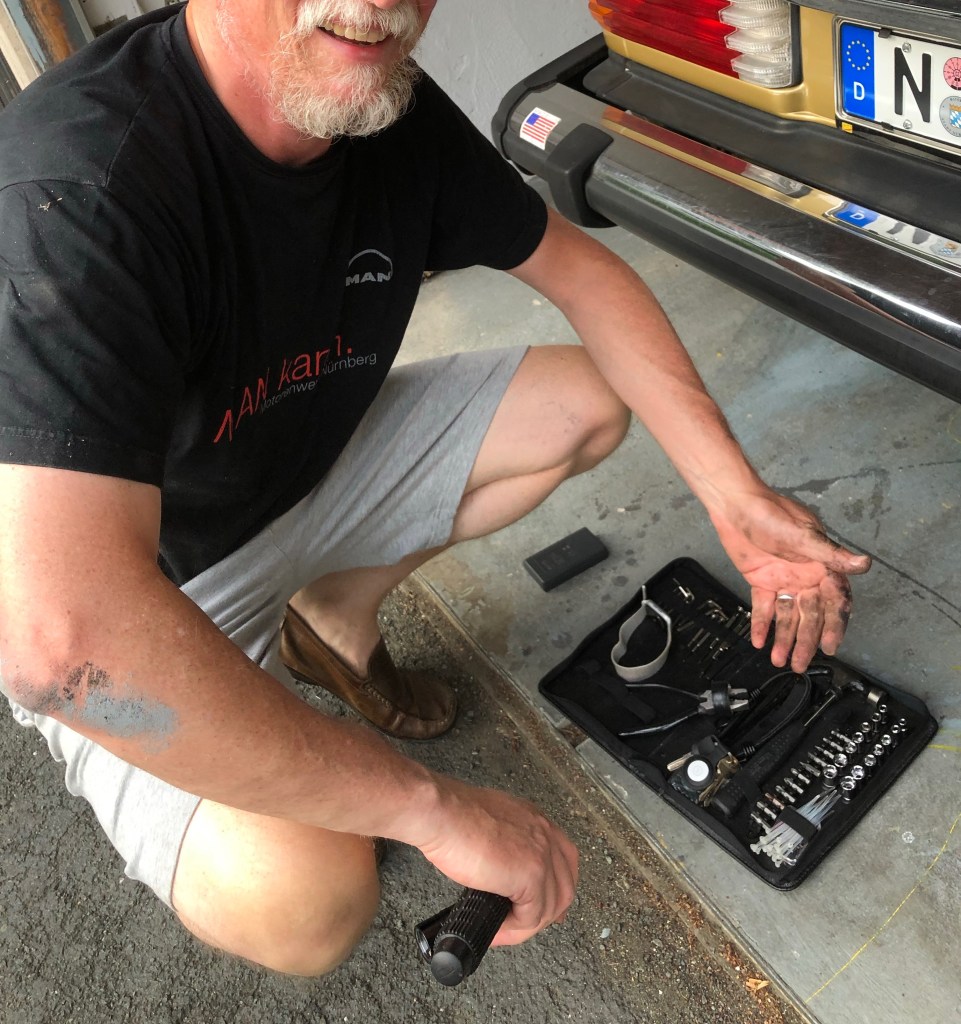 Aber ich hatte doch recht – denn beim heutigen Startversuch nach vier Tagen Ruhepause flog mir die instandgesetzte Spritleitung um die Ohren und es lag eine Benzinpfütze unterm Auto.