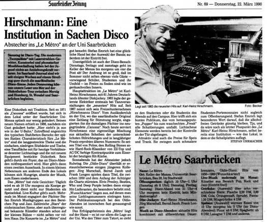 Mitte der 90er war ich wohl letztmals in der „Hirschmann-Disko“ – klar, denn ich wohnte ja seit 1992 nicht mehr im erweiterten Umkreis, sondern kam nur noch gelegentlich in Saarbrücken vorbei.
