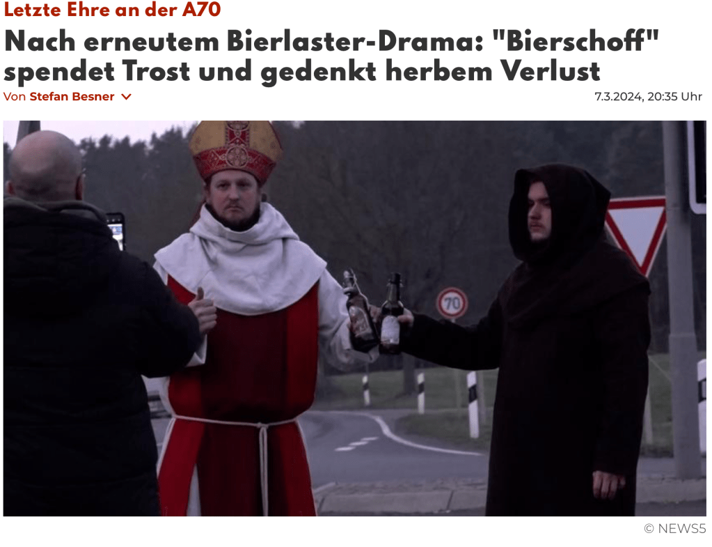 „Neben all der launigen Lockerheit findet der Bierschoff gegen Ende allerdings auch ein paar durchaus ernstgemeinte Worte. Im Gespräch mit „News5“ erklärt er: „Wir können froh sein, dass hier immer nur Bierkästen liegen und bisher noch kein Mensch.“ Dann werde nämlich „Aus bierernst todernst.““