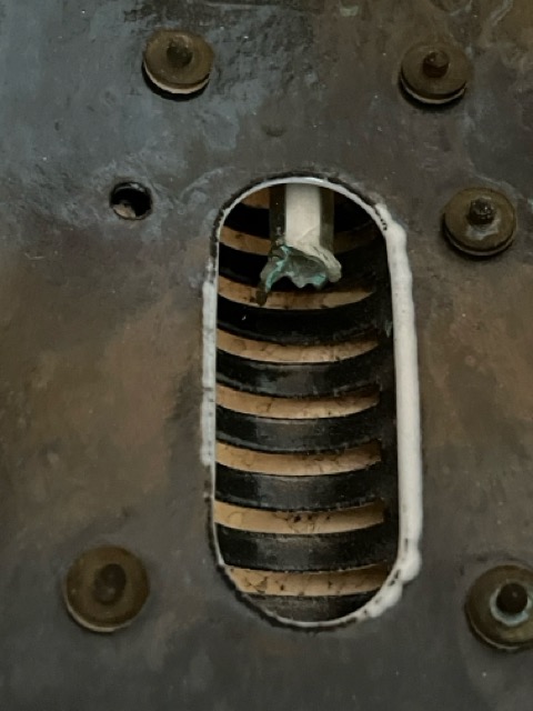 Die alten Blechteile wurden zerlegt und gereinigt, dann die neue Kapillare eingesetzt. Zur Fixierung ist etwas Heisskleber hilfreich, denn die alte Kapillare aus der ersten Hälfte des 20. Jahrhunderts war mehr als doppelt so dick und die emaillierten Haltebügel möchte ich nicht entsprechend flachbiegen … denn dann platzt die Beschichtung sicherlich ab.