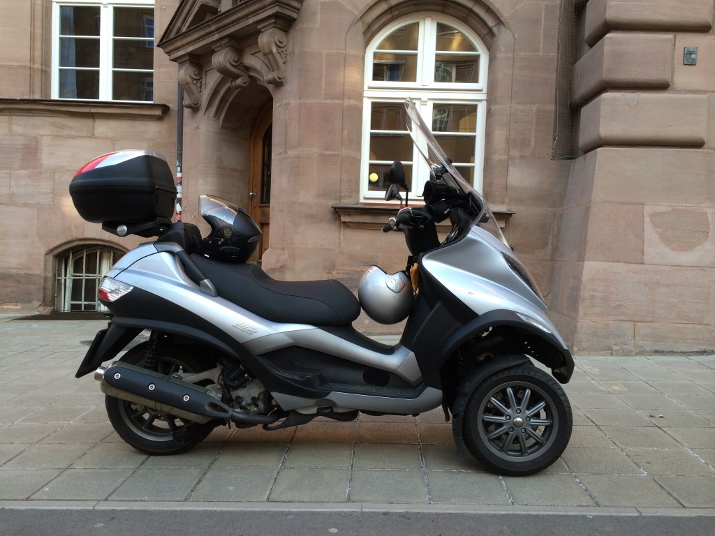 Im Jahr 2013 wollte ich dann etwas besseren Ersatz für den maladen Kymco, und nachdem Piaggio seit einigen Jahren mit dem MP3 ein interessantes Konzept vermarktete, war ich solch einen Roller als MP3 125 auch schon mal probegefahren. Boaah, teuer, lahm und schwer, im Vergleich zum wendigen Kymco-Roller. Da braucht es mehr Leistung!