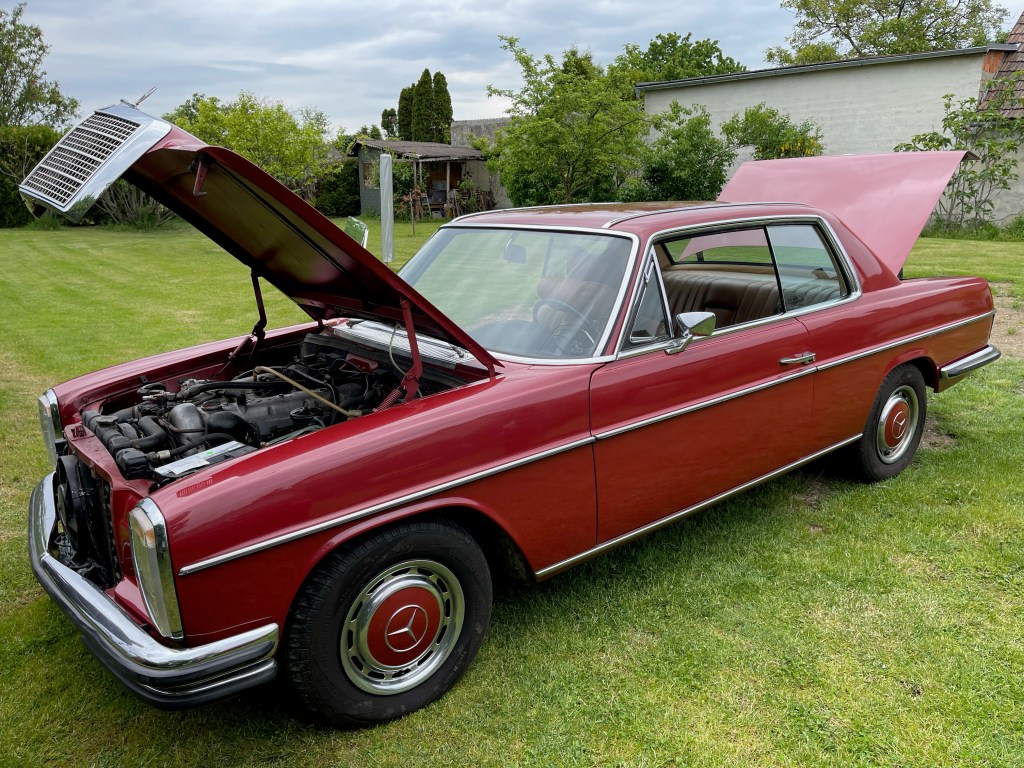 Insbesondere die von Paul Bracq entworfene „Pagoden-Dachlinie“ gefällt mir wirklich sehr gut. Die gab es (namensbildend) erstmals beim Mercedes W113 (unbezahlbar) und dann eben auch beim Coupé des W114 (das mir gerade entgangen war). Aber das Hardtop des W107 Roadsters (R107) trägt dasselbe Design … nur sind die 107er eben mittlerweile auch ziemlich teuer geworden.