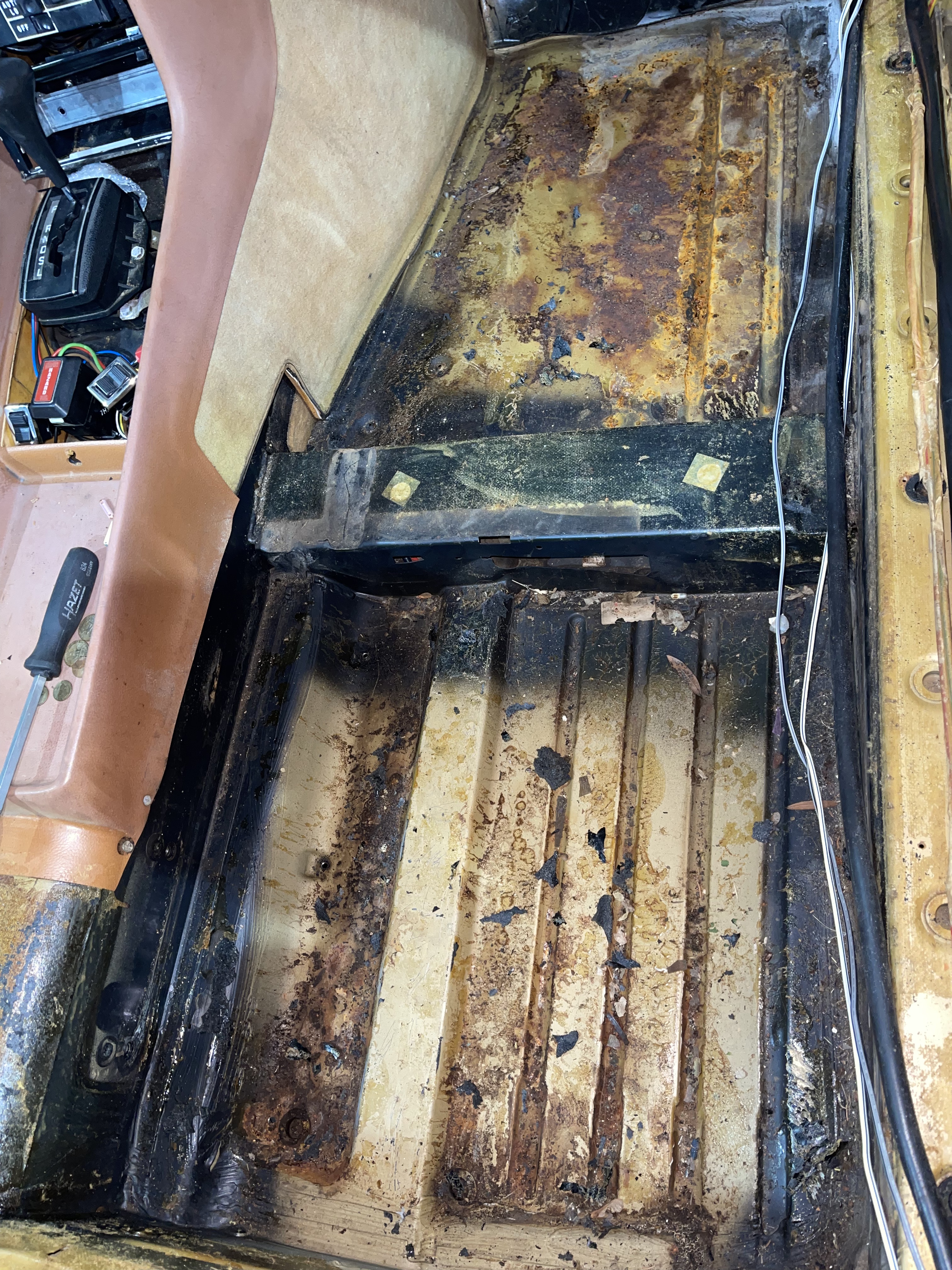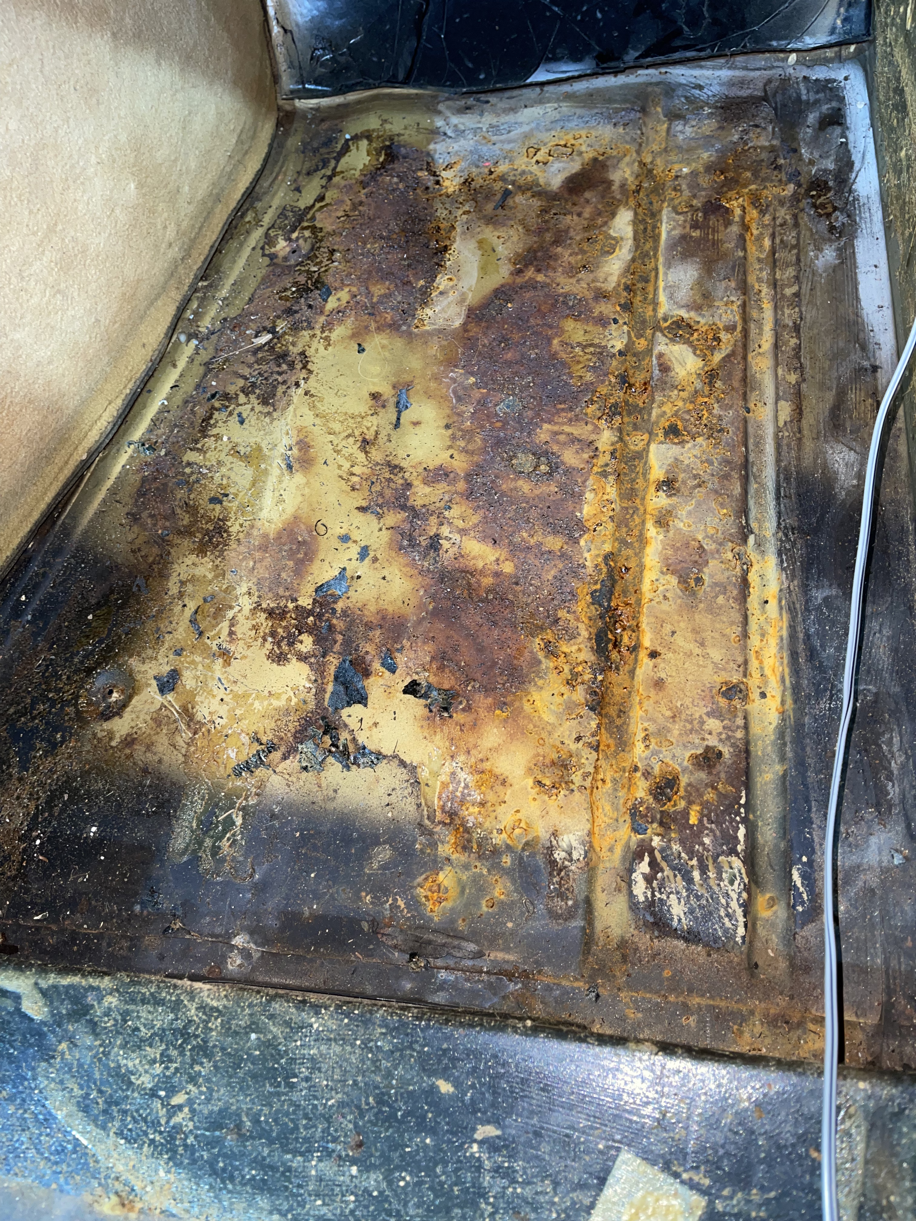 Das wird also saniert und teilweise ersetzt werden müssen, bevor die Teppiche und Sitze wieder reinkommen.