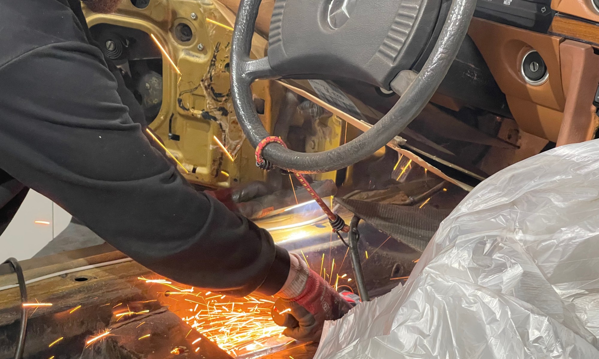 Das Ausbeulen übernimmt Martins Kollege Dima, ein gelernter Karosseriebauer.