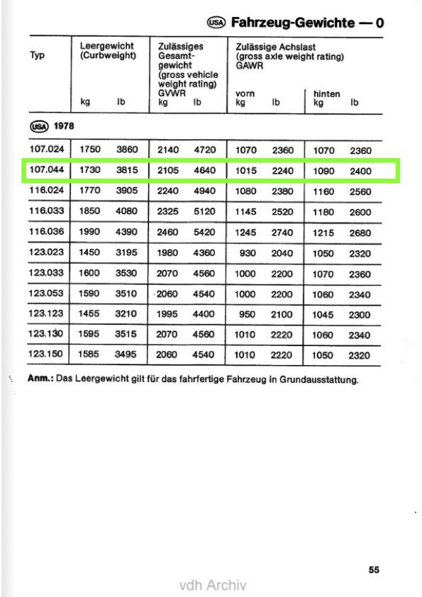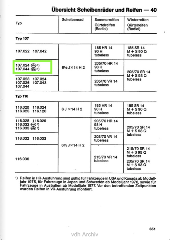 - gleichzeitig wurden die freigegebenen Rädergrößen aus dem Tabellenbuch von 1978 sowie aus dem separaten Mercedes-Freigabeblatt übernommen, so dass künftig auch 15-Zoll-Räder legal montierbar sind
