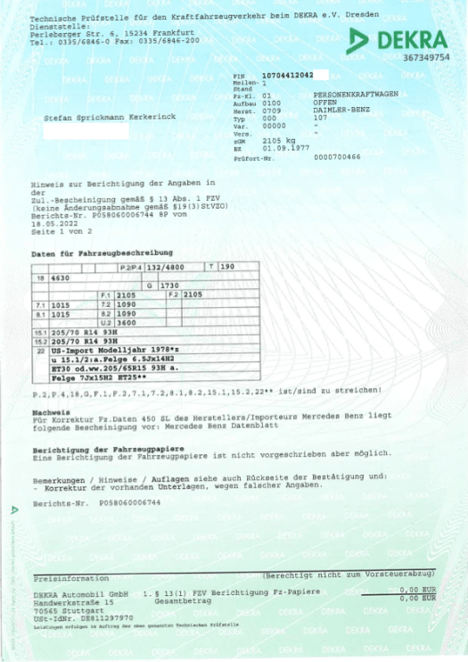 Von Martin kam der letztendlich goldrichtige Tipp, nicht den Weg einer erneuten Datenbeschaffung über eine TÜV-Stelle zu gehen, sondern bei der seinerzeit tätig gewesenen DEKRA zu reklamieren.