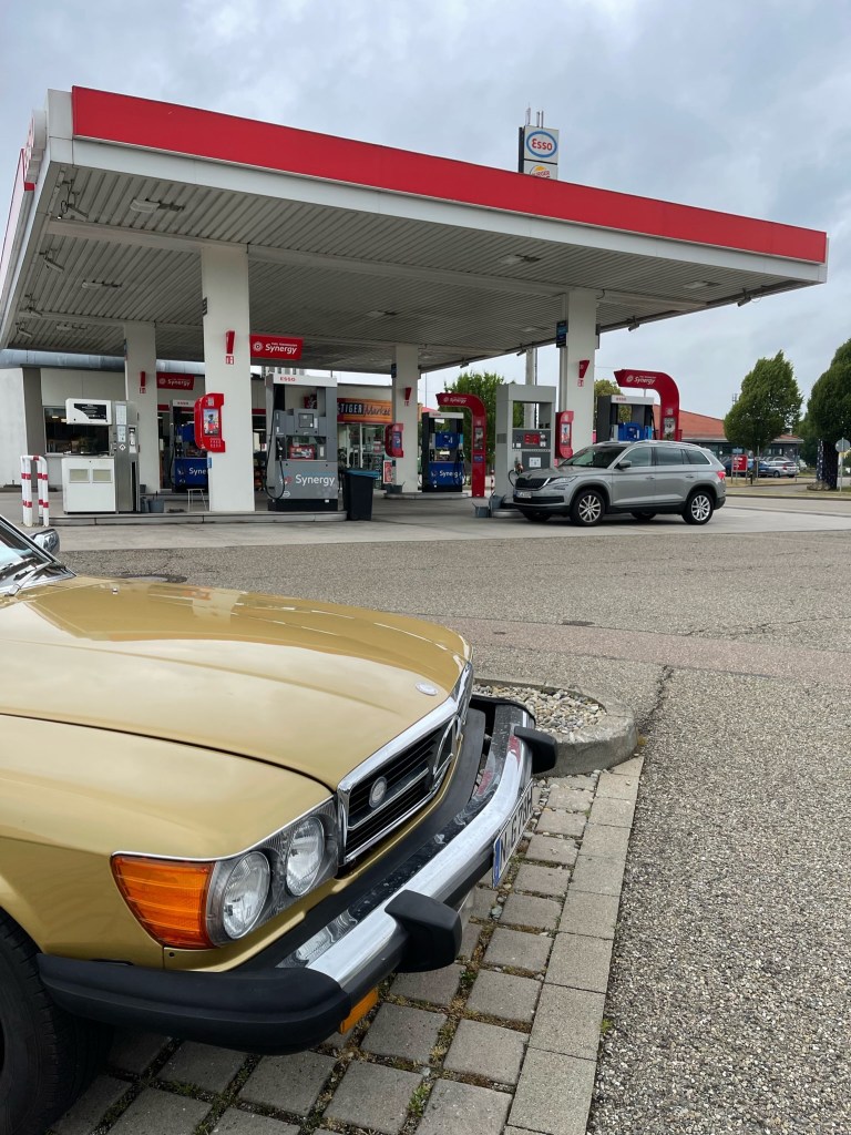 Der Ausflug ist bald vorbei … zurück nach Italien, vorher wird nochmal vergleichsweise günstig vollgetankt (Super 95 kostet heute in 🇸🇲 ca. 1,71 ggü. 1,85 in 🇮🇹).