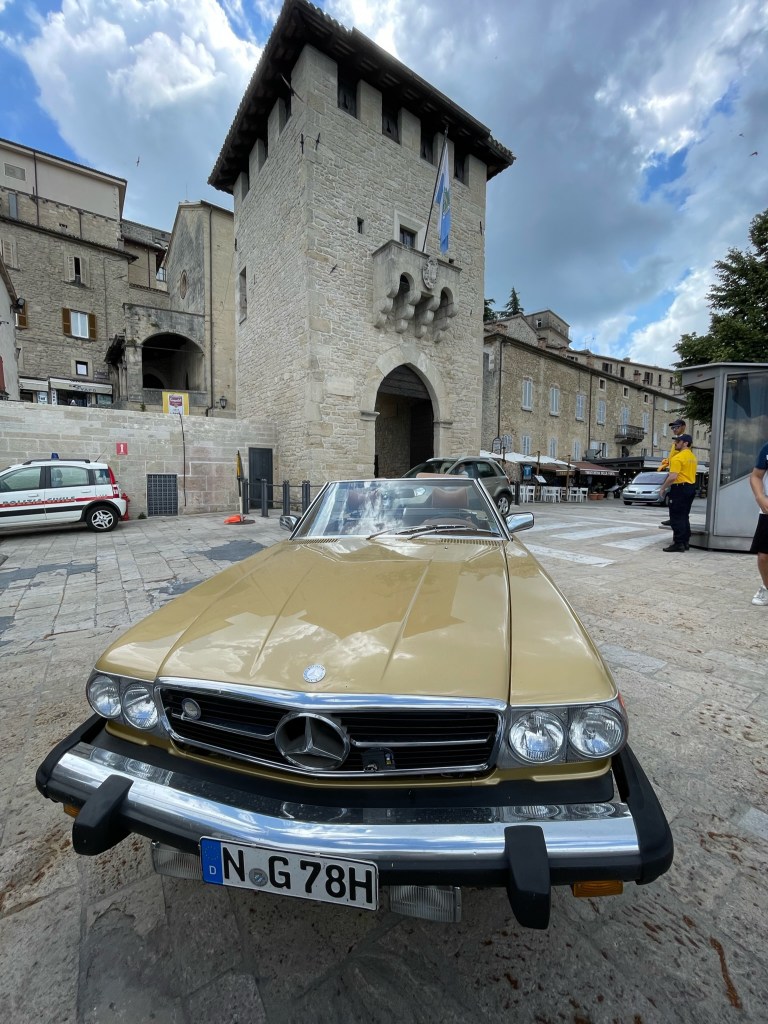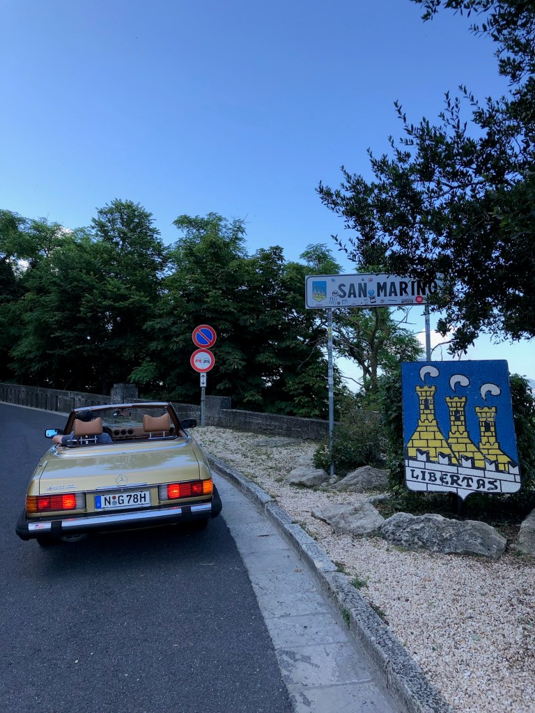 28 Miles to San Marino 🇸🇲 – am 03.07.2023 verlässt der Guzzler kurzzeitig die EU. Allerdings müssen wir feststellen, dass (Falsch-)Parken mit diesem auffälligen Fahrzeug ziemlich teuer werden kann … 50 EUR für 10 Minuten … aber dafür gibt’s auch einige schöne Erinnerungsfotos …