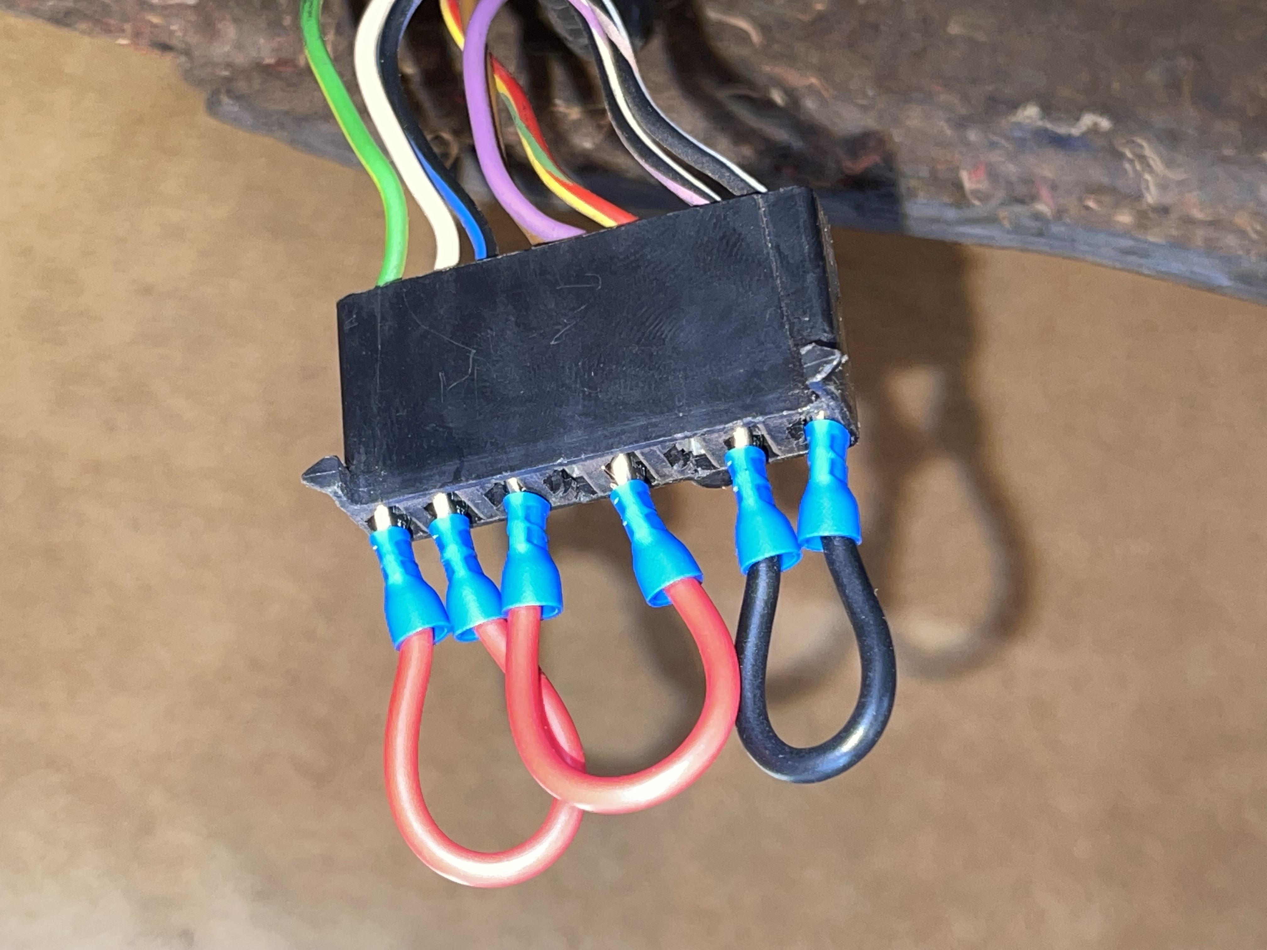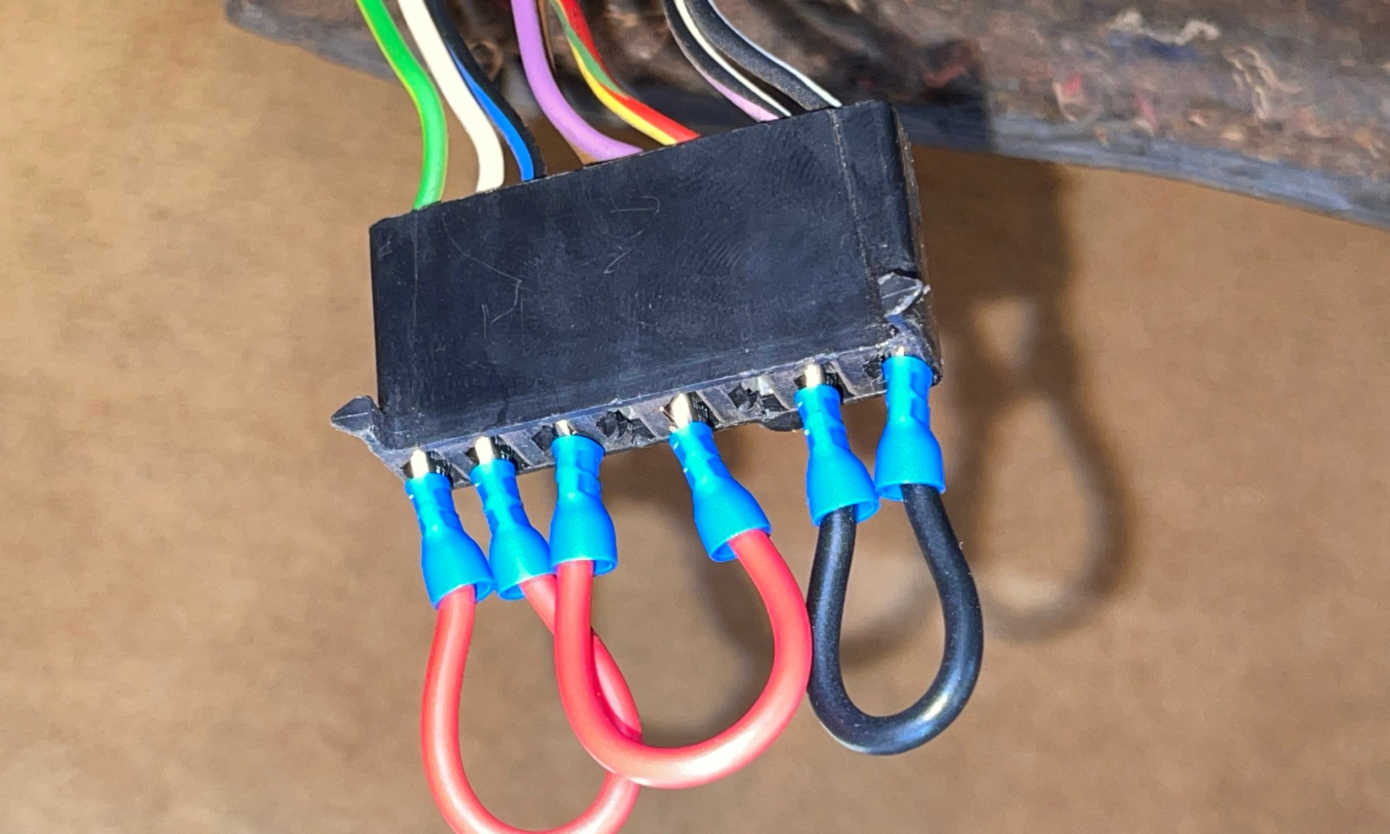 Das ist eigentlich nicht sonderlich kompliziert … die vom ausgebauten Regulierventil abgezogenen Steckverbinder werden (bitte passend!) in die Steckerleisten der Hamilton-Box eingesteckt. Allerdings war es bei mir nötig, den mit Klebeband / Gewebeband gewickelten Originalkabelbaum auf der Länge von einige cm vorsichtig aufzuschneiden, um etwas mehr „Freiheit“ zu erlangen.