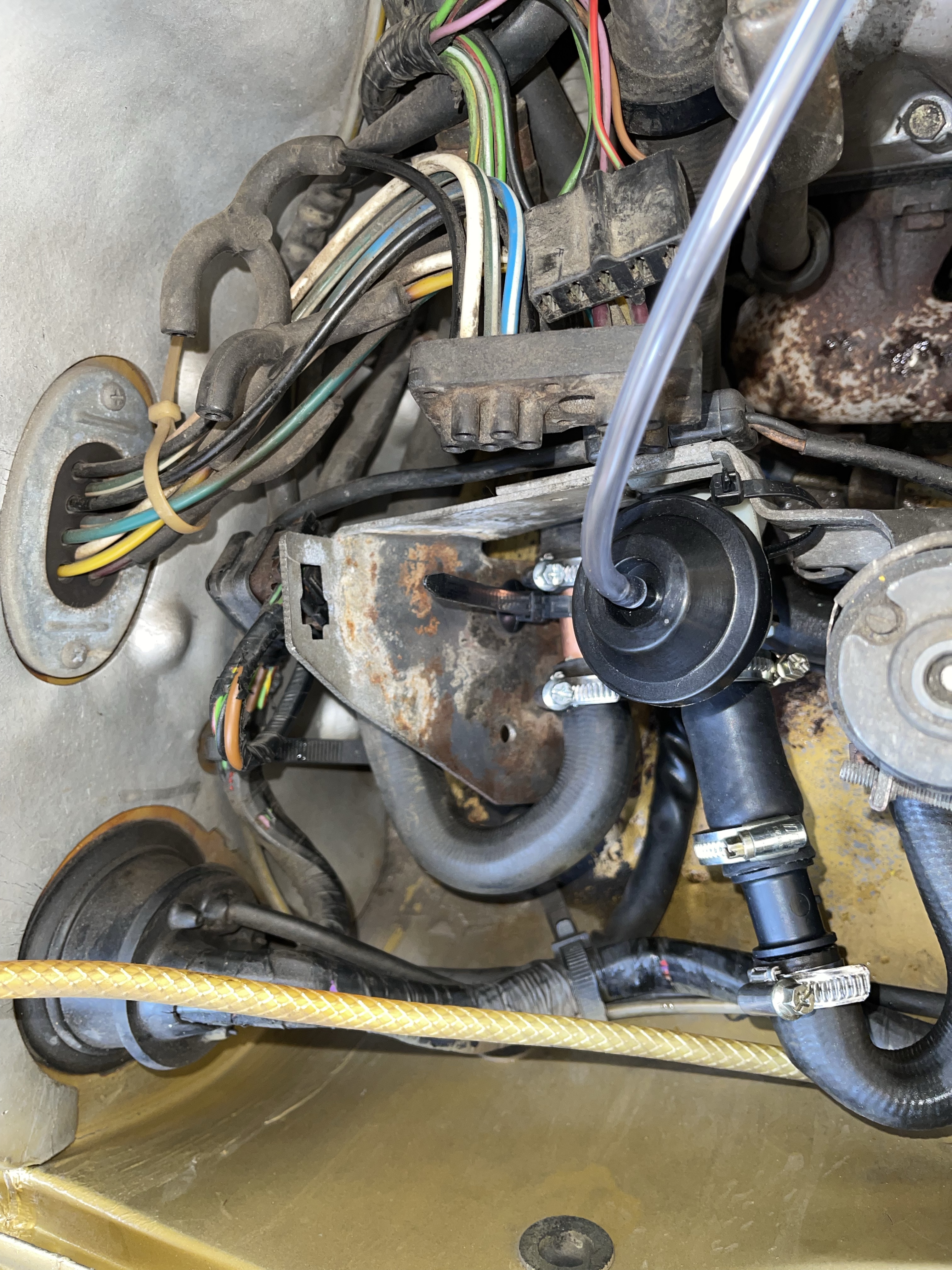 Im Motorraum werden nun anstelle des ausgebauten Regulierventiles zwei Leitungen verlegt … und hier ist die Hamilton-Anleitung etwas mißverständlich formuliert, daher folgende Bilder: