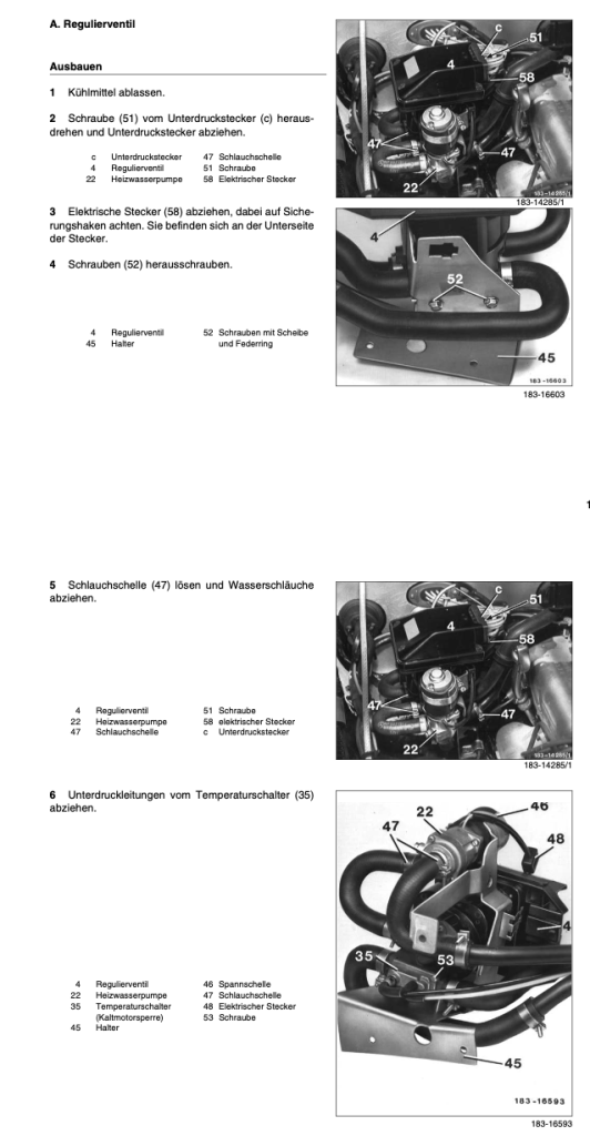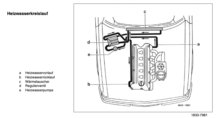 Im WIS ist unter 83-632 der Ausbau des Regulierventiles beschrieben. Entgegen der Darstellung ist es m.M.n. nicht notwendig, Kühlmittel abzulassen; es tritt nur eine relativ geringe Menge aus. Allerdings sollte der Motor abgekühlt sein!