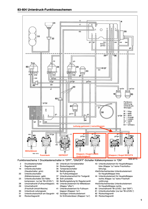 - defekte Stellelemente bzw. Druckverlust im Vakuumsystem sorgen dennoch gerne dafür, dass entweder der Klimakompressor gar nicht erst anspringt (wenn Vakuum fehlt) oder eben die Luftverteilung nicht funktioniert wie vorgesehen.