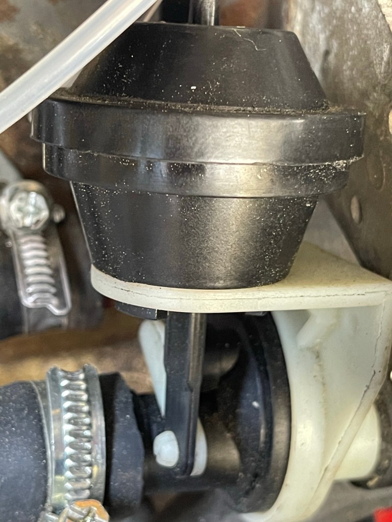 Die mechanische Befestigung des Regulierventiles geschieht durch zwei Schrauben im Haltebügel (oben mit Nr. 52 gekennzeichnet), die in Richtung Schottwand „tief unten“ liegen und mit „Erwachsenenhänden“ schlecht erreichbar sind. Geduldsspiel, aber immerhin müssen wir sie nur lösen, nicht wieder montieren.