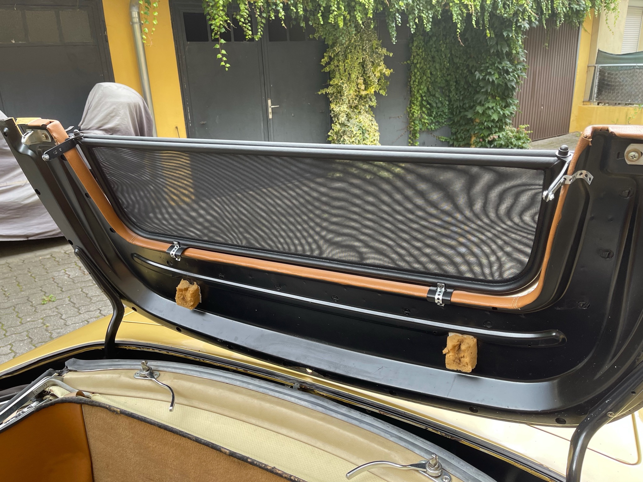 Jetzt kann das Windschott also dauernd montiert bleiben und stört auch nicht mehr beim Betätigen des Verdeckes.