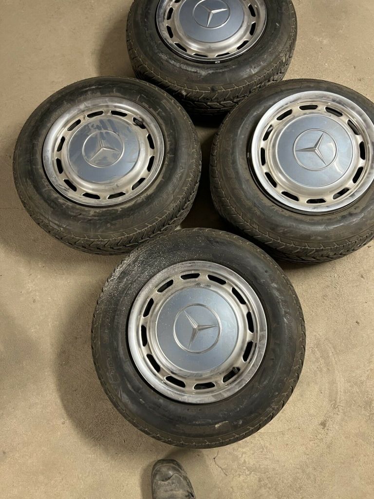 Letzthin habe ich im Internet vier originale gut erhaltene Stahlfelgen samt Radkappen entdeckt und gekauft, die sollten demnächst bei mir eintreffen. Leider sind die Radkappen in einem wunderschönen blaumetallic und nahezu neuwertig. Die müssen wir umlackieren (Sakrileg?), bevor dann auch neue Reifen auf die Stahlfelgen kommen. Ob die vorhandenen Radmuttern auf den Stehbolzen damit kompatibel sind, bleibt zu prüfen.